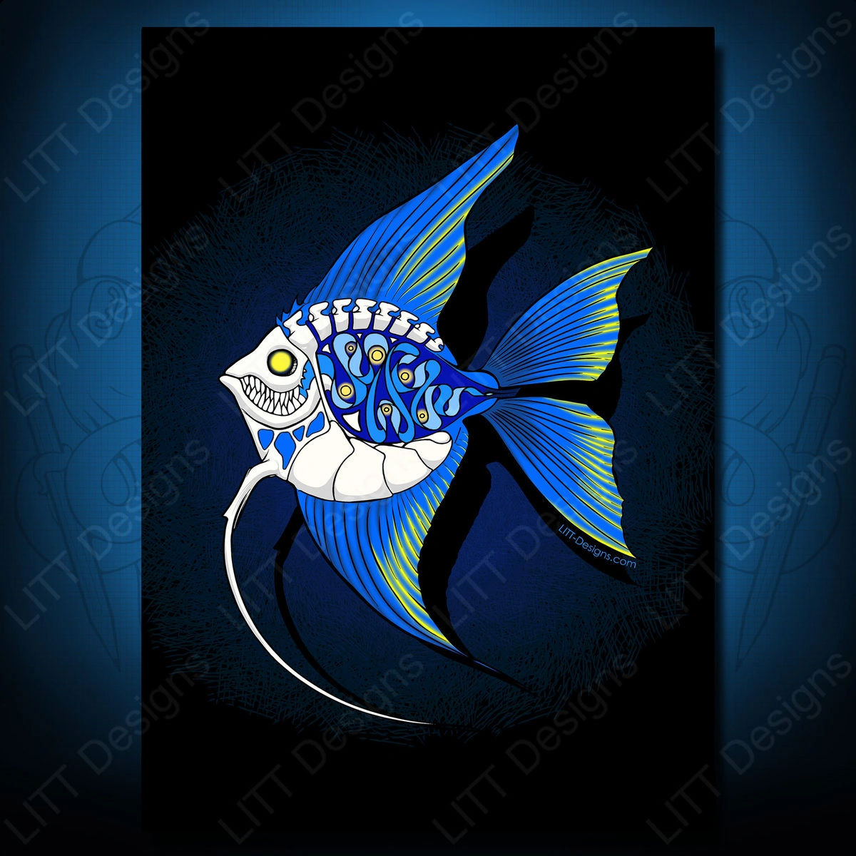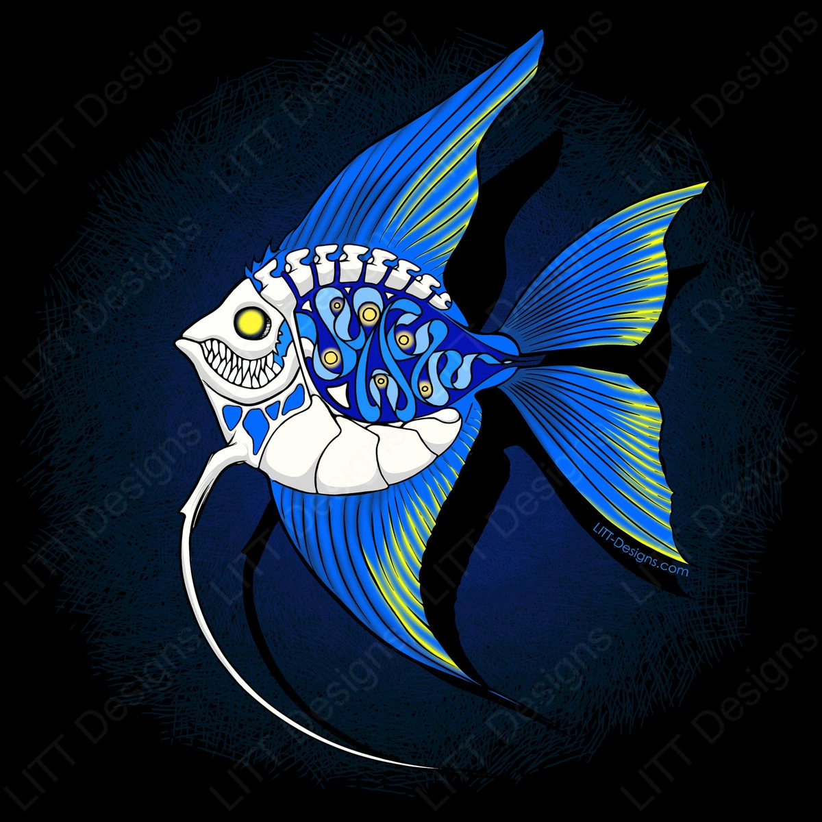 An abstract cross section of a freshwater angelfish. Angelfish are one of my favorite aquarium fish, related to Oscars, and Cichlids.
