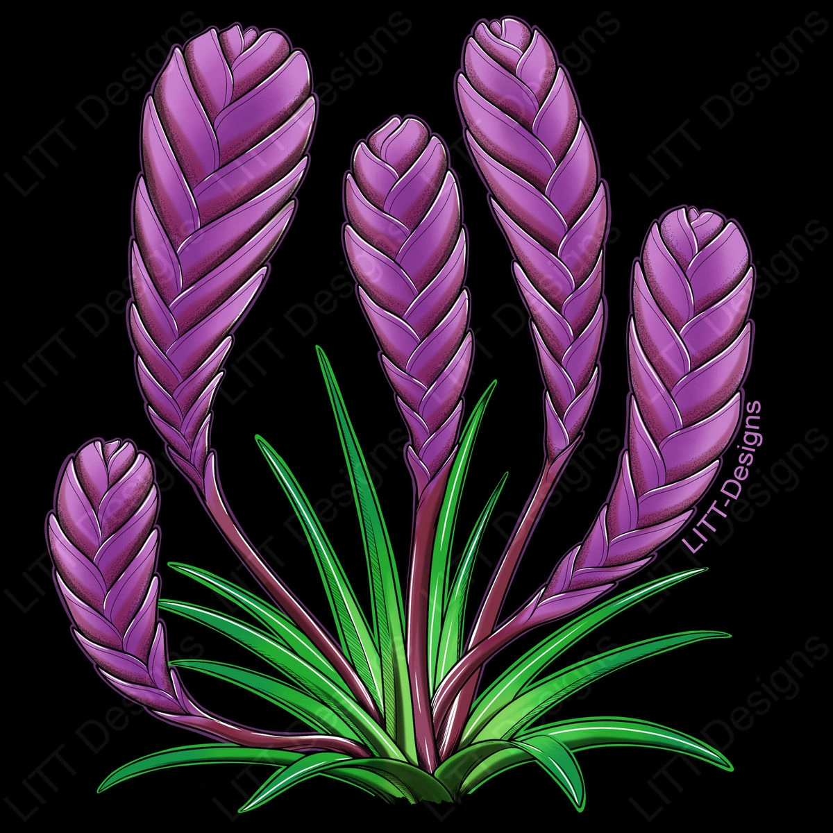 A member of the bromeliad family. Bromeliads are a large and diverse family of plants that include Spanish moss, and Pineapples.