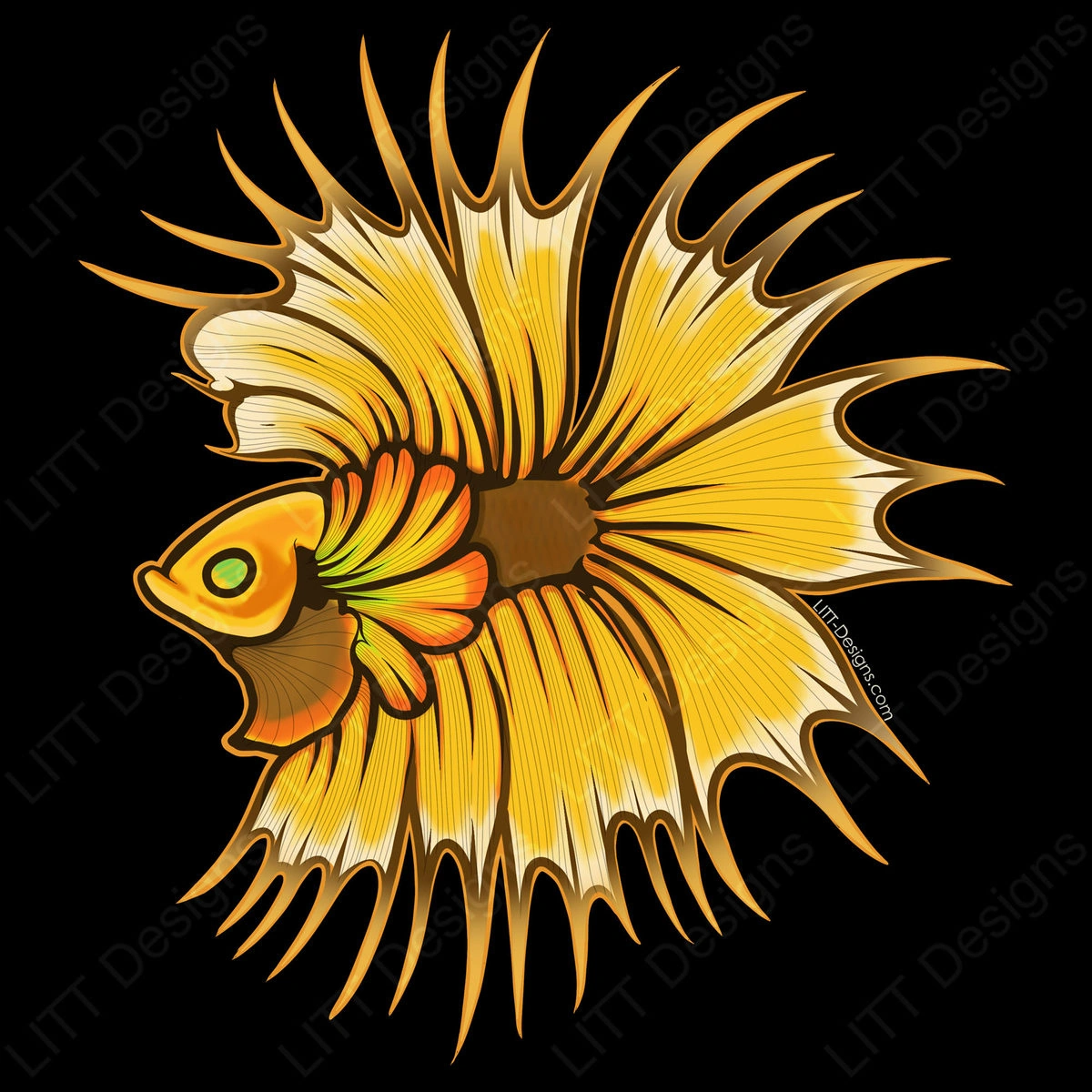 Some of the Bettas in The LITT Designs collection are based on actual pet fish the artist kept in the past. This one however, is only a concept.