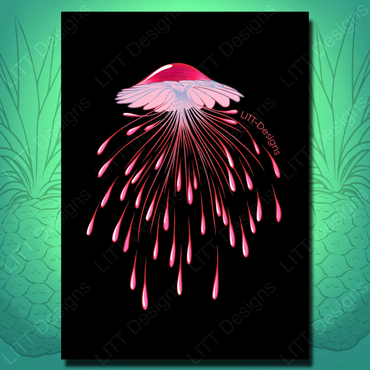 This piece was originally upside down, as a doodle of some kind of prehistoric fungus. I flipped the page to find that it was cooler as a jellyfish.