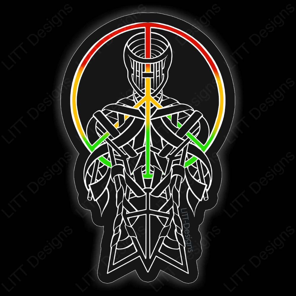 The potential for peace is woven in a familiar form. He is made of metal beams, representing strength, and flowing ribbons, representing grace.
