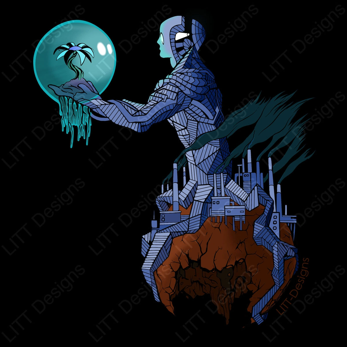 The creature clings to what it took for granted. One neat thing I can reference about this drawing is the concept of soil depletion.